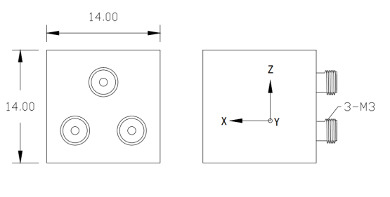 物理特性 输出方式:M3-3安装方式:胶粘传感元件:陶瓷/剪切壳体材料:不锈钢密封方式:激光焊接尺 寸:14*14*14mm重 量:15g工作温度:-55~180°